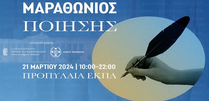 Από τις 10:00 έως τις 22:00 θα διεξαχθεί ο Μαραθώνιος Ποίησης, στα Προπύλαια του ΕΚΠΑ. Φοιτητές, διδακτικό και διοικητικό προσωπικό, κάτοικοι της Αθήνας, ακόμη και περαστικοί, θα μπορούν να απαγγείλουν κείμενα από το ευρύ φάσμα του παντοιόγλωσσου ποιητικού λόγου, με σκοπό την ανάδειξη ήχων και φωνών στην καθημερινότητα, που μεταμορφώνουν το ηχοτοπίο της πόλης. Στην εκδήλωση θα συμμετέχει και ο Δήμαρχος Αθηναίων.