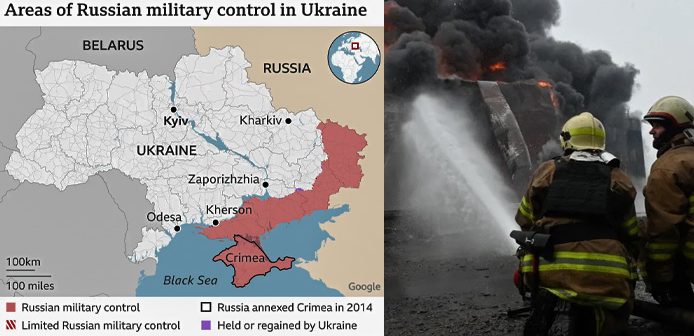 Το 2022 η Ρωσία προσάρτησε παράνομα τις δύο περιοχές ή επαρχίες του Ντονμπάς, το Ντονέτσκ και το Λουχάνσκ. Εκεί διεξάγονται οι περισσότερες μάχες στην ξηρά τους τελευταίους 18 μήνες.