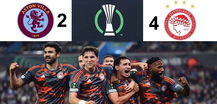 Ο Ολυμπιακός πήρε θρυλικό «διπλό» στην έδρα της Άστον Βίλα με σκορ 4-2, για τον πρώτο ημιτελικό του Conference League.