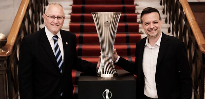 «Η καρδιά του UEFA Europa Conference League χτυπάει στην Αθήνα, η οποία πλέον κινείται στους ρυθμούς του μεγάλου τελικού της διοργάνωσης. Το βαρύτιμο τρόπαιο, το οποίο θα διεκδικηθεί το βράδυ της 29ης Μαΐου στις 22:00 στον τελικό που θα διεξαχθεί στην AEK Arena με φιναλίστ τον Ολυμπιακό και τη Φιορεντίνα βρίσκεται στην πλατεία Κοτζιά απέναντι από το Δημαρχείο Αθηνών.