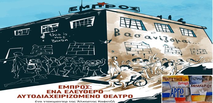 Με τη θερμότατη υποστήριξη και βοήθεια της σκηνοθέτριας Άλκηστις Καφετζή και με απεριόριστη δική μας χαρά και τιμή, παρουσιάζουμε το 1ο της ντοκιμαντέρ μεγάλου μήκους με τίτλο «ΕΜΠΡΟΣ: ένα ελεύθερο αυτοδιαχειριζόμενο θέατρο».