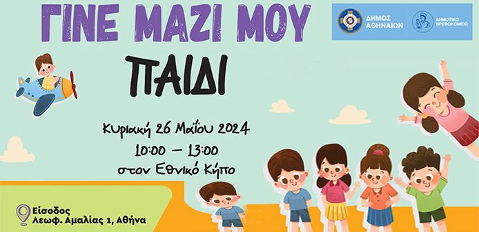 Την Κυριακή 26 Μαΐου 2024, ο ανανεωμένος Εθνικός Κήπος στην καρδιά της Αθήνας, θα γεμίσει με παιδικές φωνές και χαμόγελα μικρών και μεγάλων. Οι παιδαγωγοί από όλους τους Βρεφονηπιακούς Σταθμούς του Δημοτικού Βρεφοκομείου του Δήμου Αθηναίων, εμπνεύστηκαν και σχεδίασαν μία μεγάλη εκδήλωση για τα φιλοξενούμενα παιδιά και τους γονείς τους με τίτλο: «Γίνε μαζί μου παιδί…».