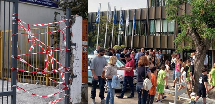 «Σήμερα περί τις 13:00 μμ., σημειώθηκε περιστατικό πτώσης της εξωτερικής καγκελόπορτας στο 3ο Δημοτικό Σχολείο Κηφισιάς σε μαθητή της γ’ Δημοτικό.