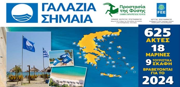 Ανακοινώθηκαν οι βραβευμένες ακτές, μαρίνες και σκάφη του προγράμματος «Γαλάζια Σημαία» για το 2024. Η Χαλκιδική αναδείχθηκε και πάλι πρωταθλήτρια σε επίπεδο περιφερειακής ενότητας με 95 βραβευμένες ακτές, ενώ η Ρόδος ακολουθεί με 54.