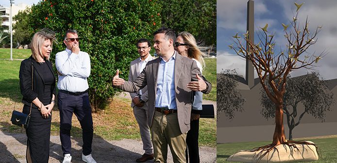 Ο Δήμαρχος Αθηναίων, Χάρης Δούκας, μαζί με την Πρόεδρο Συλλόγου Θυμάτων Τεμπών, Μαρία Καρυστιανού επισκέφτηκαν το πάρκο Ερμού και Πειραιώς, απέναντι από την Τεχνόπολη, το σημείο όπου θα τοποθετηθεί το γλυπτό-μνημείο για τα θύματα της πολύνεκρης σιδηροδρομικής τραγωδίας.