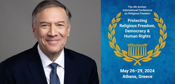 Στην απογευματινή συνεδρία κεντρικός ομιλητής ήταν ο πρώην υπουργός Εξωτερικών των ΗΠΑ Mάικ Πομπέο, με θέμα «Τα Ανθρώπινα Δικαιώματα, η Θρησκευτική Ελευθερία και η εμπλοκή τους σε ζητήματα γεωπολιτικής τάξης».