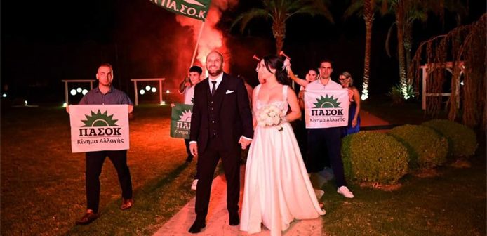 Η αγάπη για το ΠΑΣΟΚ αποτέλεσε το κεντρικό θέμα ενός γάμου που πραγματοποιήθηκε το περασμένο Σαββατοκύριακο στο Αγρίνιο.