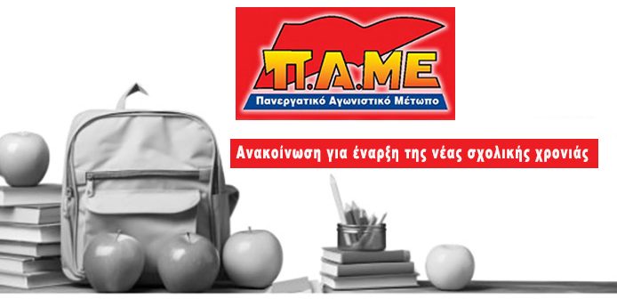 ευχόμαστε καλή σχολική χρονιά με δύναμη και αισιοδοξία, με συλλογικό αγώνα για τα όνειρα και τις ανάγκες της λαϊκής οικογένειας για αξιοπρεπή ζωή και για ένα σχολείο σύγχρονο και δωρεάν, που πραγματικά θα μορφώνει και θα διαπαιδαγωγεί ισότιμα όλα τα παιδιά.