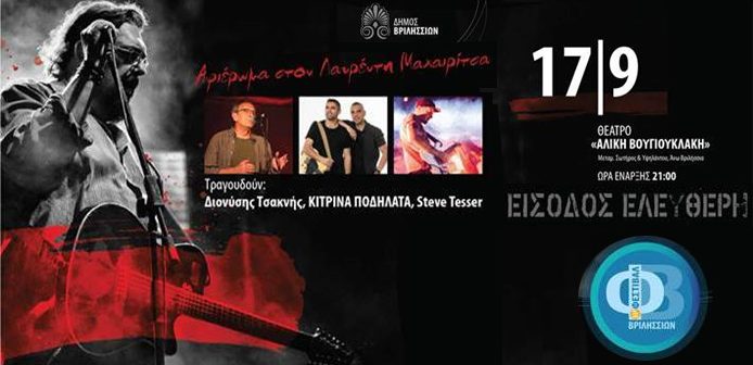 Μια ξεχωριστή βραδιά αφιερωμένη στον Λαυρέντη Μαχαιρίτσα με ελεύθερη είσοδο, άποψη Τρίτη 17 Σεπτεμβρίου 2024 στο θέατρο «Αλίκη Βουγιουκλάκη» στο πλαίσιο του 35ου Φεστιβάλ Βριλησσίων.