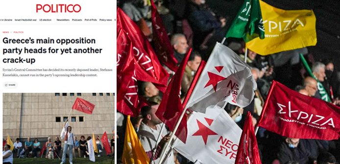 «Η διχόνοια έχει διογκωθεί μετά την κακή επίδοση του κόμματος στις ευρωεκλογές του Ιουνίου, ενώ έχουν υπάρξει δικαστικές απειλές, λεκτικές επιθέσεις, ακόμη και κλήση της αστυνομίας για ασφάλεια στα κεντρικά γραφεία του κόμματος. Ο Κασσελάκης διατηρεί επιθετική στάση απέναντι στην πλειοψηφία των μελών του κόμματος και ιδιαίτερα απέναντι στον προκάτοχό του, τον Τσίπρα», αναφέρει το Politico και παραθέτοντας τα όσα συνέβησαν τελευταία στο κόμμα της αξιωματικής αντιπολίτευσης υπενθυμίζει ότι «τον περασμένο μήνα ο Κασσελάκης καθαιρέθηκε από την ηγεσία μέσω πρότασης δυσπιστίας, εν μέσω κατηγοριών για αυταρχική συμπεριφορά και για μη ευθυγράμμιση ιδεολογικά με το κόμμα».