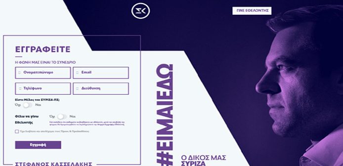Στο ερωτηματολόγιο της εγγραφής για τον «δικό μας ΣΥΡΙΖΑ» ζητείται ονοματεπώνυμο, email, τηλέφωνο και διεύθυνση, ενώ υπάρχουν δύο ακόμα ερωτήματα «αν είστε μέλος του ΣΥΡΙΖΑ» και «αν θέλετε να γίνετε εθελοντής».