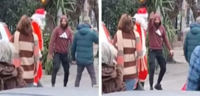 Σύμφωνα με σχετική ανακοίνωση του Δήμου, «ο αστυνομικός, φορώντας κουκούλα και πολιτικά χτύπησε εθελοντή Πολιτικής Προστασίας, που ήταν ντυμένος Άϊ Βασίλης».