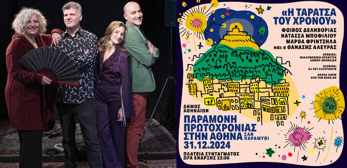 Την παραμονή Πρωτοχρονιάς, Τρίτη 31 Δεκεμβρίου, υποδεχόμαστε το 2025 στην πλατεία Συντάγματος, στη μεγάλη γιορτή του Δήμου Αθηναίων. Φέτος, η καθιερωμένη πρωτοχρονιάτικη εκδήλωση της πόλης φέρνει στην καρδιά της ένα μουσικοθεατρικό πολυθέαμα, την «Ταράτσα του Χρόνου», με την υπογραφή του Φοίβου Δεληβοριά. Ο αγαπημένος καλλιτέχνης, μαζί με τη Νατάσσα Μποφίλιου, τη Μάρθα Φριντζήλα και τον Θανάση Αλευρά, παρουσιάζει μια πρωτότυπη παράσταση που μέσα από τραγούδια, χορούς και χιουμοριστικά στιγμιότυπα θα μας ταξιδέψει στην ιστορία της Αθήνας, από το 1945 μέχρι το 2025.