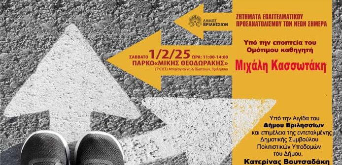 Εστιάζοντας σε θέματα που αφορούν τη νέα γενιά της πόλης μας, σε συνεργασία με τον Ομότιμο καθηγητή του Πανεπιστημίου Αθηνών κ. Μιχάλη Κασσωτάκη ο Δήμος Βριλησσίων διοργανώνει κύκλο σεμιναρίων Επαγγελματικού Προσανατολισμού.