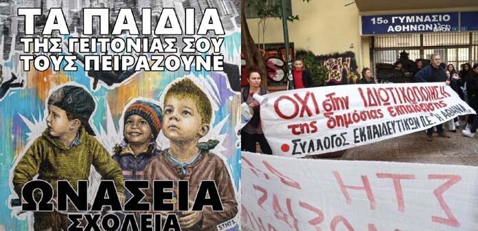 Δικαίως ο λαός, οι εργαζόμενοι είτε ενστικτωδώς, είτε πιο συνειδητά κατανοούν ποια είναι η δουλειά της αλεπούς στο παζάρι. Γιατί κυβερνητικά στελέχη και άνθρωποι των εφοπλιστών χέρι – χέρι οικοδομούν το «σχολείο του μέλλοντος». Πίσω από τα Ωνάσεια σχολεία, τα πρότυπα, τα αυτόνομα σχολεία στην Αμερική, στην Βρετανία, στα αναπτυγμένα ευρωπαϊκά κράτη, τα σχολεία που χωρίζουν τα παιδιά από δέκα χρονών, όπως στην Γερμανία, κρύβεται η πιο επικίνδυνη, η πιο άδικη, η πιο αντιεπιστημονική ή πιο απάνθρωπη «παιδαγωγική αντίληψη». Η κυρίαρχη τάξη επιδιώκει να αναπαράγει ακόμα περισσότερο ένα σχολείο κατ’ εικόνα και κατ’ ομοίωση του εαυτού της, του ανταγωνισμού, του ατομισμού, της υποταγής των πάντων στους στόχους των κερδών της.