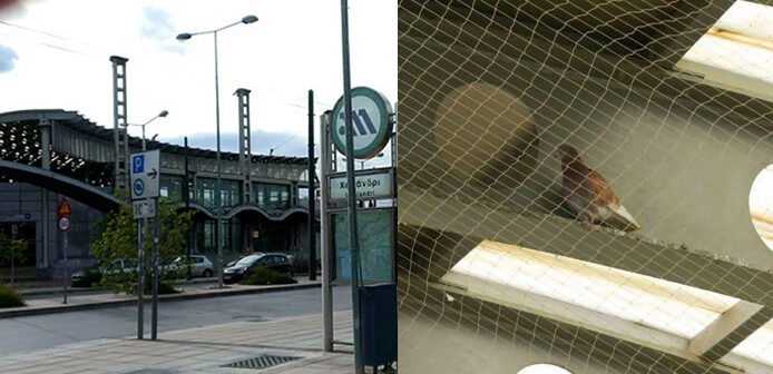 Κίνδυνο για τη δημόσια υγεία και ντροπή για τον πολιτισμό μας αποτελεί η απαράδεκτη κατάσταση που επικρατεί στη στάση «Χαλάνδρι» του Μετρό, από τα νεκρά, εγκλωβισμένα στα πλέγματα της οροφής, περιστέρια.
