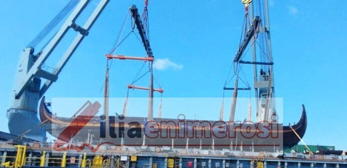Μάλιστα χθες το πρωί του Σαββάτου (8/2) στο Κατάκολο, όσοι βρισκόντουσαν και πιο συγκεκριμένα στο λιμάνι, αντίκρισαν ένα απροσδόκητο και συνάμα εντυπωσιακό θέαμα, που δεν ήταν άλλοαπό τo αντίγραφο αυτού του εντυπωσιακού ξύλινου πλοίου να ξεφορτώνεται από το κατάστρωμα ενός φορτηγού πλοίου που βρισκόταν ελλιμενισμένο στην προβλήτα του λιμανιού.