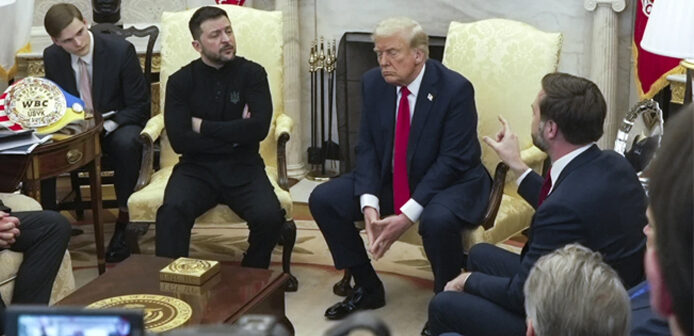 Ο Αμερικανός Πρόεδρος Τραμπ, διαπληκτίστηκε την Παρασκευή (28/2) με τον Ουκρανό ομόλογό του Ζελένσκι, κατηγορώντας τον για «ασέβεια» σε μια έκτακτη συνάντηση στο Οβάλ Γραφείο του Λευκού Οίκου και, στη συνέχεια, ακύρωσε αιφνιδιαστικά την υπογραφή μιας συμφωνίας για τα ορυκτά που – σύμφωνα με τον Τραμπ – θα έφερνε την Ουκρανία πιο κοντά στον τερματισμό του πολέμου της με τη Ρωσία.