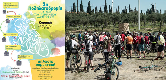 Για δεύτερη συνεχή χρονιά οι Δήμοι Χαλανδρίου και Αχαρνών συνδιοργανώνουν μαζί με την Αδριάνεια Κοινότητα Χαλανδρίου, το Σύλλογο «Επισκήνιον» για την ανάδειξη του Αρχαίου Θεάτρου Αχαρνών και την ποδηλατική ομάδα Νυχτοπεταλιές, ποδηλατικό γύρο στα ίχνη του Αδριάνειου Yδραγωγείου με αφορμή την Παγκόσμια Ημέρα Νερού.