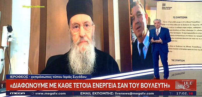 Επιπλέον ο Μητροπολίτης Ναυπάκτου Ιερόθεος μίλησε και στην εκπομπή «Live News» και τον Νίκο Ευαγγελάτο, λέγοντας πως διαφωνεί η Ιερά Σύνοδος με τον βανδαλισμό των έργων. Ο κ. Ιερόθεος, μεταξύ των άλλων, ανέφερε στην εκπομπή του Νίκου Ευαγγελάτου και τα εξής:
