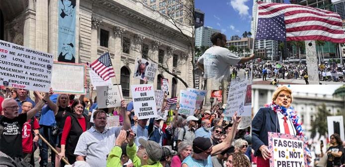 Διαδηλώσεις κατά του Τραμπ πραγματοποιήθηκαν σε όλη την Αμερική το Σάββατο, με τους διαδηλωτές να καταγγέλλουν την καταστολή της μετανάστευσης από την κυβέρνηση και τις μαζικές απολύσεις σε κυβερνητικές υπηρεσίες.