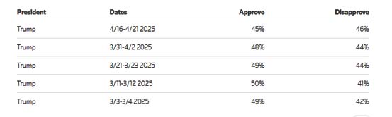 Αν και το ποσοστό δημοτικότητας του Ρεπουμπλικάνου παραμένει υψηλότερο από αυτό που καταγραφόταν κατά τη μεγαλύτερη διάρκεια της θητείας του Δημοκρατικού προκατόχου του, τα ευρήματα της δημοσκόπησης υποδεικνύουν πως πολλοί Αμερικανοί αισθάνονται άβολα, ειδικά για κινήσεις του που έχουν σκοπό να τιμωρηθούν πανεπιστήμια που βρίσκει υπερβολικά φιλελεύθερα καθώς και το ότι ονόμασε τον εαυτό του επικεφαλής του διοικητικού συμβουλίου του Κέντρου Κένεντι, πολιτιστικού και θεατρικού θεσμού στην Ουάσιγκτον.