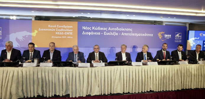 Κοινή συνεδρίαση των διοικητικών συμβουλίων της ΚΕΔΕ και της ΕΝΠΕ πραγματοποιήθηκε χθες, 28 Απριλίου 2025, για πρώτη φορά στην ιστορία των δύο βαθμών Τοπικής Αυτοδιοίκησης, εν αναμονή της ολοκλήρωσης του Νέου Κώδικα Τοπικής Αυτοδιοίκησης που σχεδιάζεται να κατατεθεί προς ψήφιση στη Βουλή από το Υπουργείο Εσωτερικών, το προσεχές διάστημα.