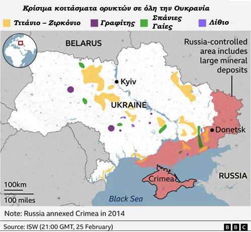 - BBC και το άρθρο των δημοσιογράφων Abdujalil Abdurasulov & Robert Plummer με τίτλο «What minerals does Ukraine have and what are they used for?»