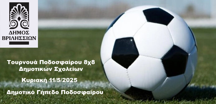 Με στόχο την ενίσχυση της ομαδικότητας, την προώθηση του «ευ αγωνίζεσθαι» και την καλλιέργεια του σεβασμού και της αλληλεγγύης μέσα από το ποδόσφαιρο, ο Δήμος Βριλησσίων, μέσω της Αντιδημαρχίας Πολιτισμού και Αθλητισμού διοργανώνει Τουρνουά Ποδοσφαίρου 8χ8 για τους μαθητές και τις μαθήτριες των Δημοτικών Σχολείων της πόλης