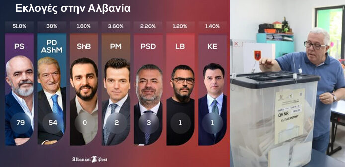 Το Σοσιαλιστικό Κόμμα του πρωθυπουργού Έντι Ράμα στην Αλβανία φαίνεται να συγκεντρώνει ποσοστό 51,8% κερδίζοντας 79 έδρες και το Δημοκρατικό Κόμμα του πρώην πρωθυπουργού Σαλί Μπερίσα συγκεντρώνοντας 38% να έρχεται δεύτερο με 54 έδρες, με τα επίσημα αποτελέσματα να αναμένονται το πρωί της Τρίτης μέσα σε κλίμα πόλωσης, σύμφωνα με τα Exit Pole.