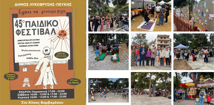 Με μεγάλη επιτυχία και ενθουσιασμό ξεκίνησε την Παρασκευή 23 Μαΐου το 45ο Φεστιβάλ Παιδιού του Δήμου Λυκόβρυσης – Πεύκης, στο Άλσος Βαρβαρέσου. Το Φεστιβάλ, ένας καταξιωμένος θεσμός για την πόλη, συνεχίζει να αποτελεί σημείο αναφοράς για τη δημιουργική έκφραση των παιδιών και τη σύνδεση της εκπαιδευτικής και πολιτιστικής κοινότητας με την τοπική κοινωνία.