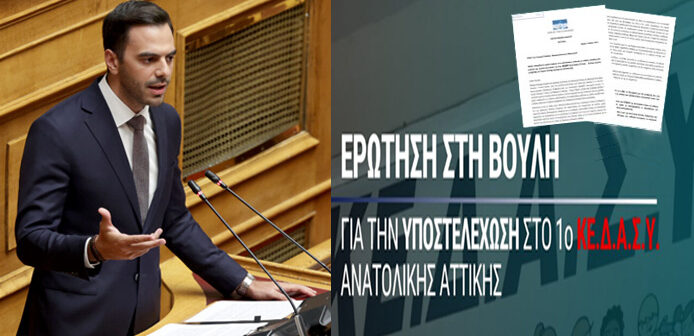 Με ερώτηση προς την Υπουργό Παιδείας, Θρησκευμάτων και Αθλητισμού, ο βουλευτής Ανατολικής Αττικής του ΠΑΣΟΚ Μανώλης Χριστοδουλάκης αναδεικνύει το οξύτατο πρόβλημα λειτουργίας του 1ου Κέντρου Διεπιστημονικής Αξιολόγησης Συμβουλευτικής και Υποστήριξης (ΚΕΔΑΣΥ) Ανατολικής Αττικής, το οποίο, εξαιτίας της υποστελέχωσης αδυνατεί να εξυπηρετήσει τις εκατοντάδες εκκρεμείς αιτήσεις αξιολόγησης μαθητών με ειδικές εκπαιδευτικές ανάγκες.