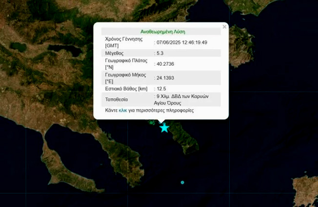 Σεισμός 5,3 βαθμών της κλίμακας Ρίχτερ σημειώθηκε αργά το μεσημέρι την περιοχή του Αγίου Όρους και εξαιτίας του μικρού εστιακού βάθους έγινε αισθητός σε ολόκληρη τη Χαλκιδική, στη Θεσσαλονίκη αλλά και σε πολλές άλλες περιοχές της Μακεδονίας.