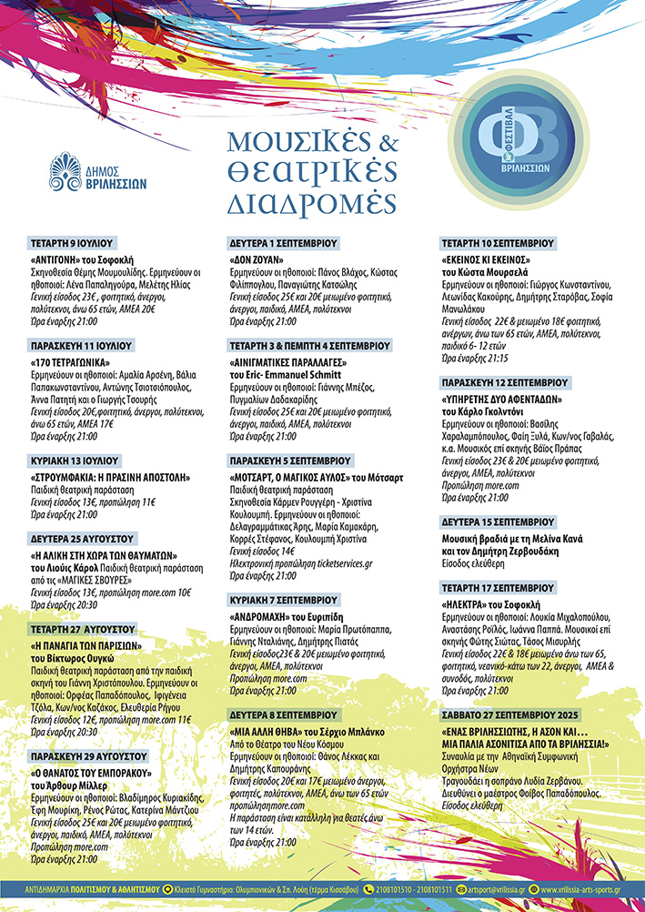 Ακολουθεί το αναλυτικό πρόγραμμα του 36ου Φεστιβάλ του Δήμου Βριλησσίων