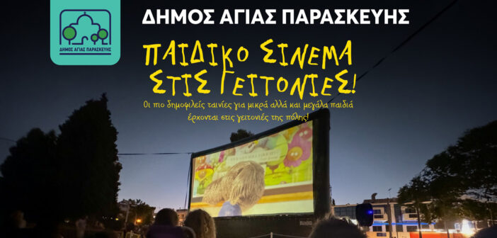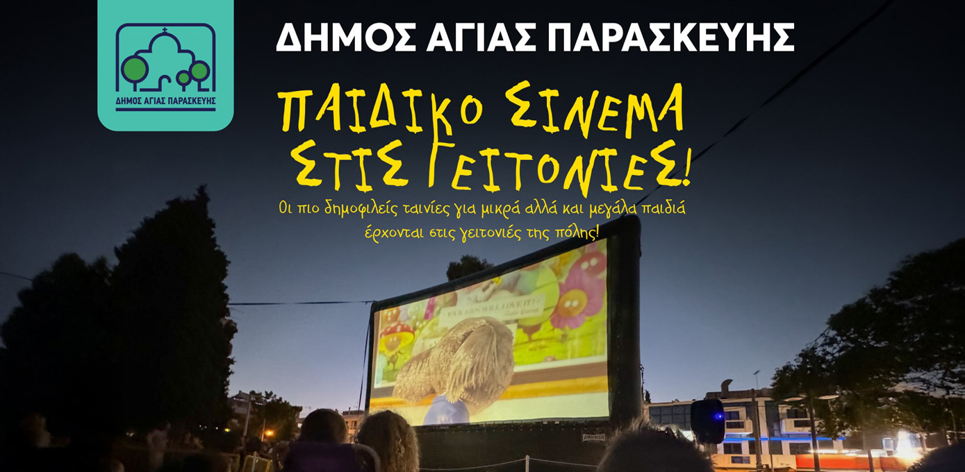 Ο Δήμος Αγίας Παρασκευής φέρνει για άλλη μία χρονιά το καλοκαιρινό παιδικό σινεμά στις γειτονιές της πόλης, μετατρέποντας πλατείες και πάρκα σε υπαίθριους κινηματογράφους.