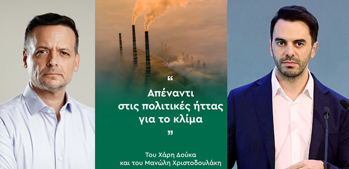 Με ένα άρθρο τους στην εφημερίδα ΤΑ ΝΕΑ, με τίτλο «Απέναντι στις πολιτικές ήττας για το κλίμα», ο Δήμαρχος Αθηναίων Χάρης Δούκας και ο βουλευτής ανατολικής Αττικής του ΠΑΣΟΚ, Μανώλης Χριστοδουλάκης θυμίζουν τον ισχυρό δεσμό που απέκτησαν στις πρόσφατες εσωκομματικές εκλογές.