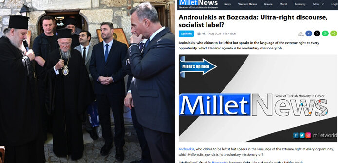 Επίθεση στον πρόεδρο του ΠΑΣΟΚ – Κίνημα Αλλαγής, Νίκο Ανδρουλάκη με απρεπείς χαρακτηρισμούς εξαπέλυσε γνωστός μειονοτικός ιστότοπος της Θράκης, στον απόηχο της επίσκεψης που είχε πραγματοποιήσει στην Τένεδο (Bozcaada) ο πρόεδρος με αφορμή τα θυρανοίξια του ανακαινισμένου Ιερού Ναού της Κοίμησης της Θεοτόκου.