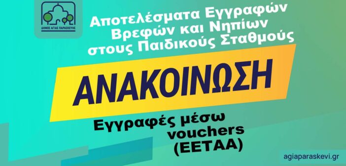 Ο Δήμος Αγίας Παρασκευής ενημερώνει τους γονείς και κηδεμόνες των βρεφών και νηπίων που έχουν υποβάλει αίτηση για φιλοξενία στους Παιδικούς Σταθμούς του Δήμου για το σχολικό έτος 2025-2026 ότι: