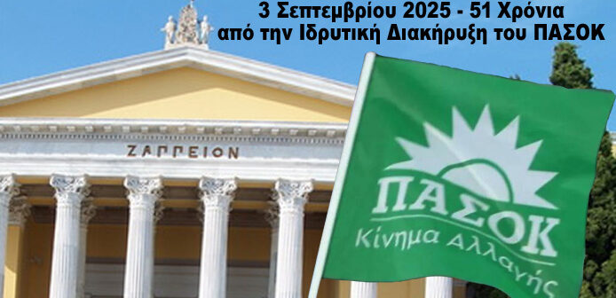 Στις 3 Σεπτεμβρίου 2025 θα λάβουν χώρα στο Ζάππειο οι εκδηλώσεις για τον εορτασμό της 51ης επετείου από την Ιδρυτική Διακήρυξη του ΠΑΣΟΚ.