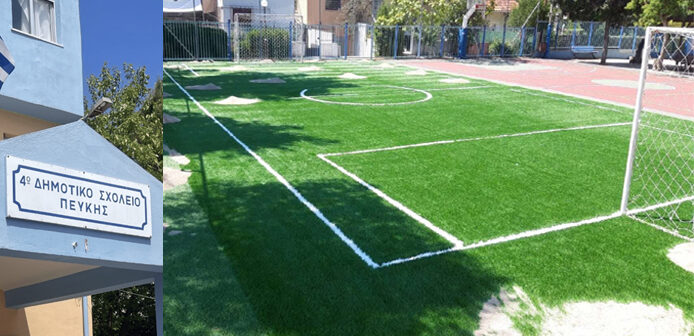 Ένα ακόμα γήπεδο 5Χ5 παραδίδεται στους μαθητές του Δήμου Λυκόβρυσης-Πεύκης. Το γήπεδο 5Χ5 στο 4ο Δημοτικό Σχολείο Πεύκης, για το οποίο η Δημοτική Αρχή είχε πριν από 2 μήνες δεσμευθεί, έγινε πράξη.