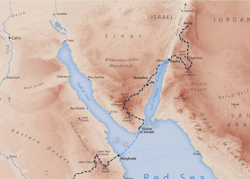 Γνωστό τοπικά ως Τζαμπάλ Μούσα, το Όρος Σινά είναι το μέρος όπου λέγεται ότι δόθηκαν στον Μωυσή οι Δέκα Εντολές. Πολλοί πιστεύουν επίσης ότι αυτό είναι το μέρος όπου, σύμφωνα με τη Βίβλο και το Κοράνι, ο Θεός μίλησε στον προφήτη από την καιόμενη βάτο.