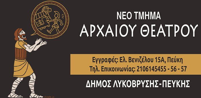 Ο Δήμος Λυκόβρυσης – Πεύκης προσκαλεί δημότισσες και δημότες να συμμετάσχουν στο νέο θεατρικό εργαστήριο με τίτλο «Αρχαίο Θέατρο για όλ@», που συντονίζει η θεατρολόγος Μαρία Χριστοδούλου.
