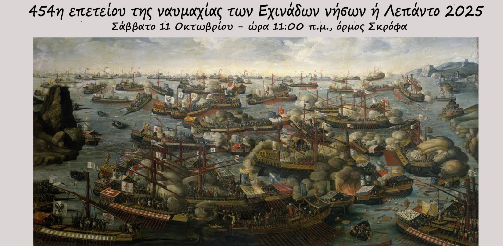 Ο πολιτιστικός φορέας «ΣΥΜΜΑΧΙΑ» που συμβάλλει με το έργο του στην πολιτιστική και περιβαλλοντική ανάδειξη της περιοχής των Οινιαδών και των νήσων Εχινάδων, διοργανώνει για 5η συνεχή φορά τις εκδηλώσεις μνήμης για την 454η επέτειο από την ιστορική ναυμαχία των Εχινάδων ή «Λεπάντο».