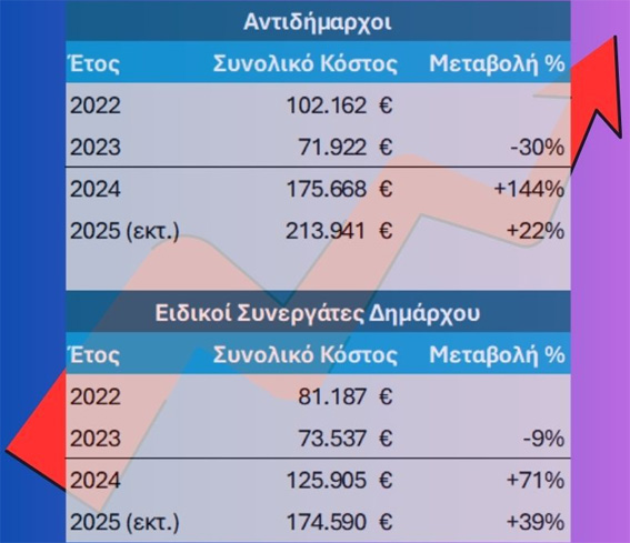 Δεν αφορούν έργα όμως. Είναι η μισθοδοσία των αντιδημάρχων και των ειδικών συμβούλων.