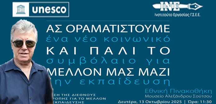 Παρουσιάστηκε η έκθεση της UNESCO «Reimagining Our Futures Together: A New Social Contract for Education» από το ΙΝΕ/ ΓΣΕΕ στις 13 Οκτωβρίου στην Εθνική Πινακοθήκη. Η Έκθεση θέτει τα κύρια ζητήματα της εκπαίδευσης σε σχέση με τις παγκόσμιες εξελίξεις. Θέτει ένα πλαίσιο, το οποίο δεν είναι εγχειρίδιο για εφαρμογή αλλά ένα πεδίο έναρξης διαλόγου παντού.