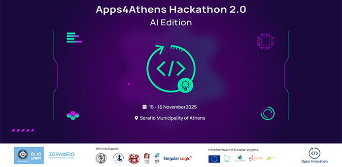 Ο Δήμος Αθηναίων διοργανώνει στις 15 και 16 Νοεμβρίου τον 2ο Μαραθώνιο Καινοτομίας «Apps4Athens Hackathon 2.0: AI Edition», με στόχο τον ψηφιακό μετασχηματισμό της πόλης, μέσα από την αξιοποίηση της Τεχνητής Νοημοσύνης και τη συμμετοχή των πολιτών. Η δράση που υλοποιείται από τη ΔΑΕΜ Α.Ε., Ανώνυμη Αναπτυξιακή Εταιρεία Μηχανογράφησης και Επιχειρησιακών Μονάδων ΟΤΑ του Δήμου, φιλοδοξεί να αποτελέσει ένα δυναμικό περιβάλλον δημιουργίας και συνεργασίας.