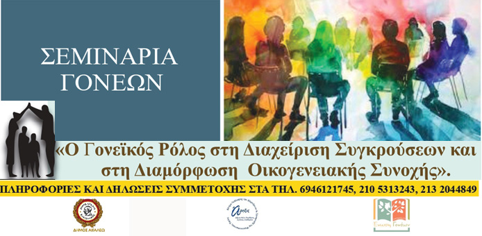Ο Δήμος Αιγάλεω, το Κέντρο Πρόληψης “Άρηξις” και η Ένωση Γονέων και Κηδεμόνων Αιγάλεω καλούν τους γονείς να συμμετάσχουν ενεργά, ενδυναμώνοντας τις οικογενειακές σχέσεις για ένα καλύτερο μέλλον!