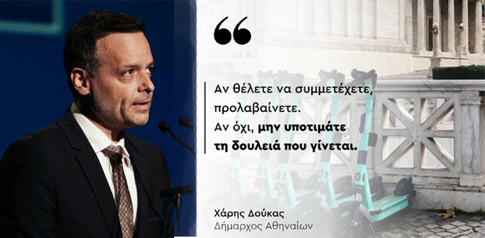 Μεγάλη κόντρα στην Αθήνα για την κατάστρωση που επικρατεί με τα ηλεκτρικά πατίνια με τον δήμαρχο της πόλης Χάρη Δούκα να απαντά, μέσω κοινωνικών δικτύων ,στον πρώην δήμαρχο Κώστα Μπακογιάννη αλλά και στην υπουργό Κοινωνικής Συνοχής και Οικογένειας Δόμνα Μιχαηλίδου για όσα ανέφερε για το ίδιο θέμα.