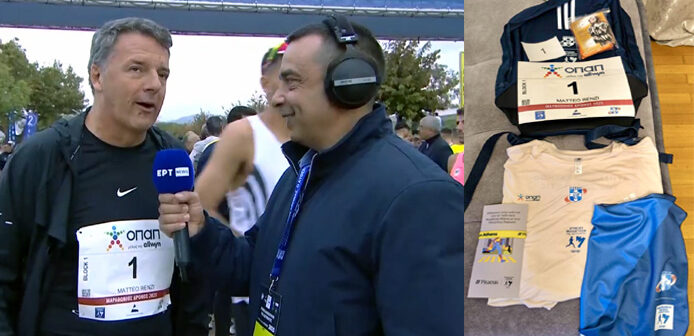 «Δεν είμαι καλός αθλητής αλλά ελπίζω να τερματίσω» είπε λίγο πριν ξεκινήσει τον μαραθώνιο ο κ. Ρέντσι λέγοντας «ευχαριστώ» στα ελληνικά στον δημοσιογράφο της ΕΡΤ.
