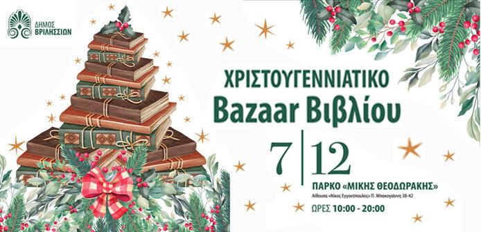 Η Λέσχη Ανάγνωσης Ενηλίκων του Δήμου Βριλησσίων διοργανώνει το φετινό Χριστουγεννιάτικο Bazaar Βιβλίου, την Κυριακή 7 Δεκεμβρίου 2025, από τις 10:00 έως τις 20:00, στον φιλόξενο χώρο της αίθουσας «Νίκος Εγγονόπουλος» στο πάρκο Μίκης Θεοδωράκης (πρ. ΤΥΠΕΤ).